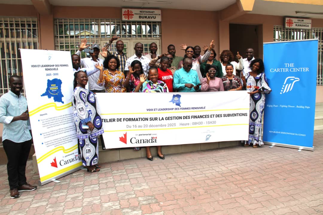 Le Centre Carter en République Démocratique du Congo a organisé, du 16 au 20 décembre 2025, au centre Caritas à Kinshasa, une session de formation dédiée à la gestion des finances et des subventions en faveur des organisations partenaires engagées dans la mise en œuvre du projet Voix et Leadership des Femmes Renouvelé (VLFR).